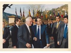 Professor Romani Prodi, the President of the of the European University Institute, Patrick Masterson, the Secretary General of the of the European University Institute, Antonio Zanardi Landi, the Mayor of Firenze, Mario Primicerio and others in the entrance of Badia Fiesolana.