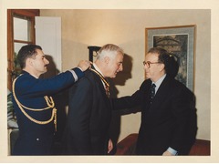 The President of the European University Institute, Patrick Masterson, and the President of Portugal, Jorge Sampaio, exchanging protocol gifts.