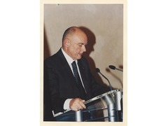 Portrait of Rainer Masera during his speech on the occasion of the visit of the President of Italy, Giorgio Napolitano.