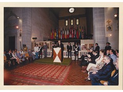 The President of the European University Institute, Patrick Masterson, during his speech on the occasion of the visit of Italian Prime Minister, Romano Prodi.