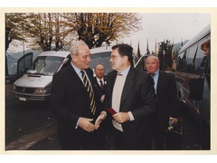 The President of the European University Institute, Patrick Masterson, greeting the President of the European Commission, Romano Prodi. Behind them, the Secretary General, Gianfranco Varvesi.