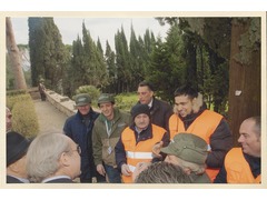The President of the European University Institute, Yves Mény, with the President of Italia, Giorgio Napolitano, talking with the workers doing the renovation in the Villa Salviati.