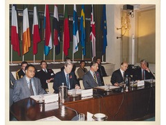 Professor Anindya Banerjee, from the Department of Economics, H. E. Sir John Shepherd, Charles, Prince of Wales and Secretary General of the European University Institute, Gianfranco Varvesi during the meeting on the ocasion of the visit of the Prince of Wales.