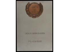 Plaque commémorative : "Trofeo di scacchi - Casa d'Europa di Roma - 3° classificato"