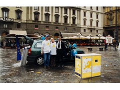 Photograph of the Florentine stop of the Federalist bus tour, taken in Piazza delle Repubblica, in Florence.