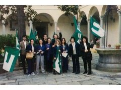 Photograph of the GFE delegation, taken on the occasion of the visit of Peter Sutherland at the European University Institute in Florence.