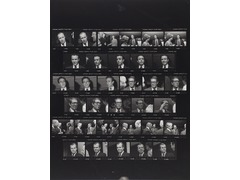 Contact print of a photo film used for reviewing and selecting images for the final print.
