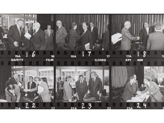 Contact print of a photo film used for reviewing and selecting images for the final print.