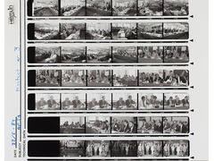 Contact print of a photo film used for reviewing and selecting images for the final print.