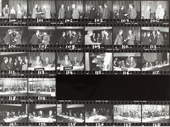 Contact print of a photo film used for reviewing and selecting images for the final print.
