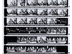 Contact print of a photo film used for reviewing and selecting images for the final print.