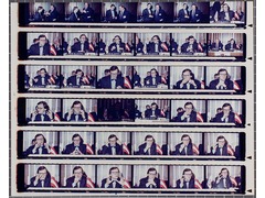 Contact print of a photo film used for reviewing and selecting images for the final print.
