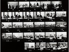 Contact print of a photo film used for reviewing and selecting images for the final print.