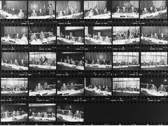 Contact print of a photo film used for reviewing and selecting images for the final print.