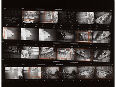 Contact print of a photo film used for reviewing and selecting images for the final print.