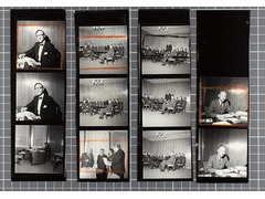 Contact print of a photo film used for reviewing and selecting images for the final print.