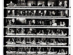 Contact print of a photo film used for reviewing and selecting images for the final print.