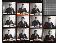 Contact print of a photo film used for reviewing and selecting images for the final print.