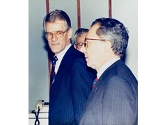 Ingvar Carlsson, walking together with Jacques Delors, President of the European Commission President, during his visit at the EC headquarters.