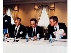EFTA Heads of Government Ministers with Jacques Delors, President and Frans Andriessen, Vice-President of the European Commission, European Community (EC)
