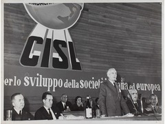 Antonio Segni at the 3th national congress of the Confederazione Italiana Sindacati Lavoratori (CISL)