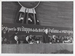 Antonio Segni at the 3th national congress of the Confederazione Italiana Sindacati Lavoratori (CISL)