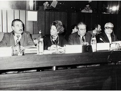 Fabrizia Baduel Glorioso , president of the European Economic and Social Committee (EESC) with Francois-Xavier Ortoli, former president of the European Commission, and Roger Louet, general secretary of the European Economic and Social Committee (EESC).