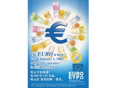 Poster on the exhibition "The Euro is here!" organized by the EU Delegation in China, The People's Bank of China and the Frankfurt Book Fair and held in Beijing, China, on 21-27 November 2001.