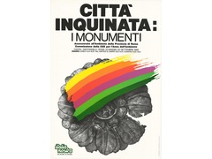 Poster on the exhibition "Città inquinata: I monumenti" held in Rome, Italy, from 23 May to 30 September 1989.