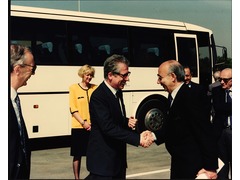 Tommaso Padoa Schioppa arrives at the construction site of the new Bank of Italy headquarters in Frascati, Italy.