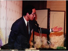 A delegate introduces the participants of the conference in the Botan Room at the Imperial Hotel in Tokyo, Japan.