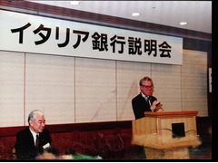 Tommaso Padoa-Schioppa giving a speech at the Imperial Hotel in Tokyo, Japan.