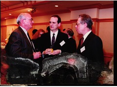 Tommaso Padoa-Schioppa with other two delegates during a cocktail at the Imperial Hotel in Tokyo, Japan.