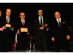 Tommaso Padoa-Schioppa receiving a prize from Giovanni Spadolini