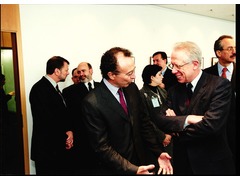 Tommaso Padoa-Schioppa with Guillermo Ortiz, Governor of the Banco de Mexico, during the visit to the European Central Bank (ECB) by the President of the United Mexican States, Vicente Fox Quesada