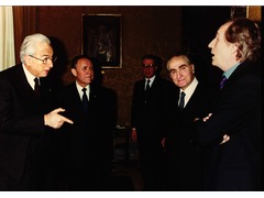 Tommaso Padoa-Schioppa with Francesco Cossiga, Carlo Azeglio Ciampi, Antonio Fazio and Giorgio Ruffolo at Quirinale Palace