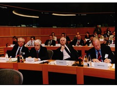 Tommaso Padoa-Schioppa participating in a hearing of the European Parliament in Brussels