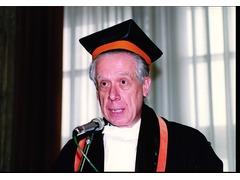 Tommaso Padoa-Schioppa doing his Lectio Doctoralis when he was awarded a Laurea Honoris Causa in International Economics of Trade and Currency Markets, at the Univeristy Trieste