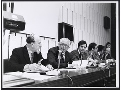 Carlo Scarascia- Mugnozza giving a press conference