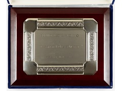 Inside a blue velvet case.
