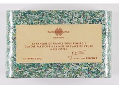 Sculpture, issued by Banque de France, containing 500-franc shredded notes. Overall value €76,224,51.