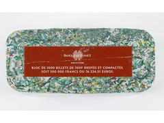 Sculpture, issued by Banque de France, containing 500-franc shredded notes. Overall value €76,224,51.
