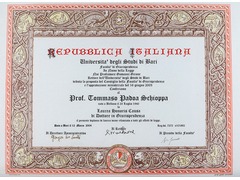 Parchment, delivered by University of Bari. Honorary degree in Law.